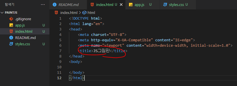2. index.html 에 html document 만들고 타이틀 이름 설정하기