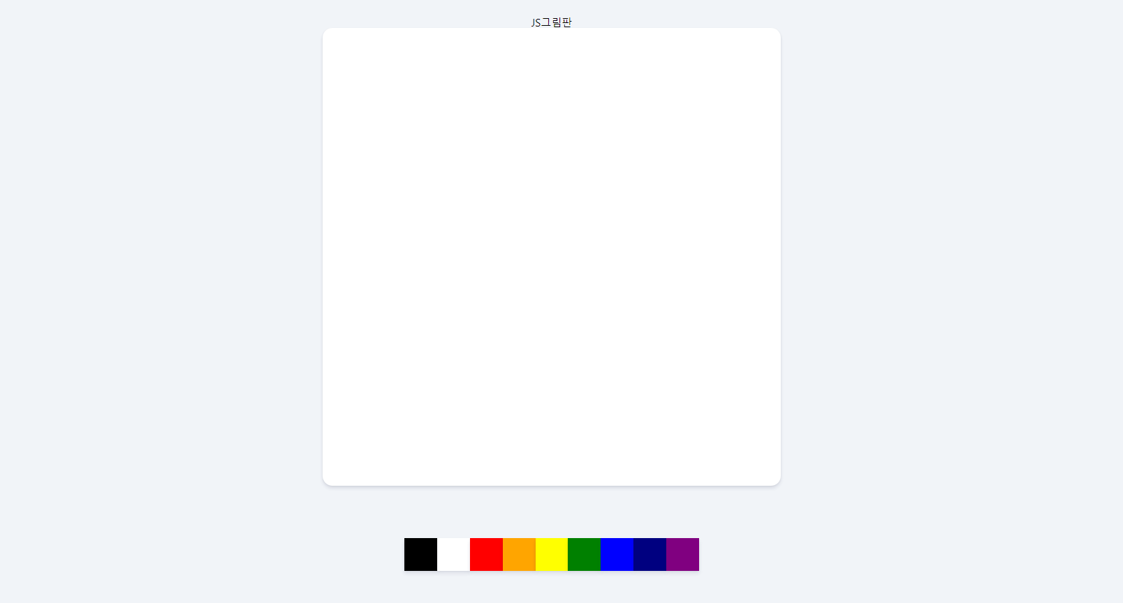 더보기@import "reset.css"; body { background-color: #f1f4f8; font-family: -apple-system, BlinkMacSystemFont, 'Segoe UI', Roboto, Oxygen, Ubuntu, Cantarell, 'Open Sans', 'Helvetica Neue', sans-serif; display: flex; flex-direction: column; align-items: center; padding-top: 50px; } .canvas { width: 700px ; height: 700px ; background-color: white; border-radius: 15px; box-shadow: 0 4px 6px rgba(50, 50, 93, 0.11), 0 1px 3px rgba(0, 0, 0, 0.068); } .controls { margin-top: 80px; } .controls .controls__colors { display: flex; } .controls__colors .controls__color { width: 50px; height: 50px; box-shadow: 0 4px 6px rgba(50, 50, 93, 0.11), 0 1px 3px rgba(0, 0, 0, 0.068); }