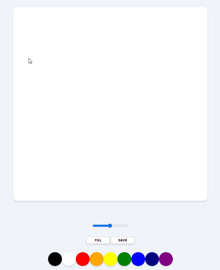 <!DOCTYPE html> <html lang="en"> <head> <meta charset="UTF-8"> <meta http-equiv="X-UA-Compatible" content="IE=edge"> <meta name="viewport" content="width=device-width, initial-scale=1.0"> <link rel="stylesheet" href="styles.css"> <title>Painting</title> </head> <body> <canvas id="jsCanvas" class="canvas"></canvas> <div class="controls"> <div class="controls__range"> <input type="range" id="jsRange" min="0.1" max="5.0" value="2.5" step="0.1"/> </div> <div class="controls__btns"> <button id="jsMode">Fill</button> <button id="jsSave">Save</button></div> <div class="controls__colors" id="jsColors"> <div class="controls__color" style="background-color: black;"></div> <div class="controls__color" style="background-color: white;"></div> <div class="controls__color" style="background-color: red;"></div> <div class="controls__color" style="background-color: orange;"></div> <div class="controls__color" style="background-color: yellow;"></div> <div class="controls__color" style="background-color: green;"></div> <div class="controls__color" style="background-color: blue;"></div> <div class="controls__color" style="background-color: navy;"></div> <div class="controls__color" style="background-color: purple;"></div> </div> </div> <script src="app.js"></script> </body> </html>